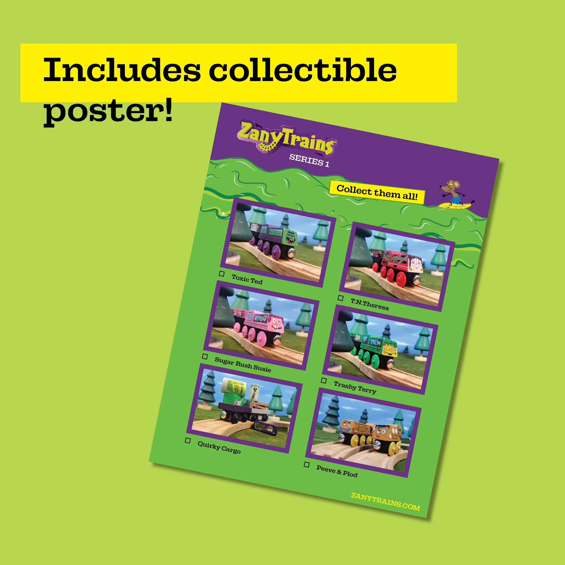 INCLUDES 15 WOODEN TRAFFIC SIGNS AND 1 COLLECTIBLE CHECKLIST POSTER - Great for diecast cars or wooden trains!