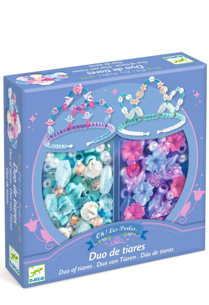 Create two magnificent tiaras worthy of a princess with this comprehensive and easy-to-make beading kit! With 240 different acrylic beads, gold headbands and flexible metallic thread, children have all the materials they need to make elegant, sparkling accessories.