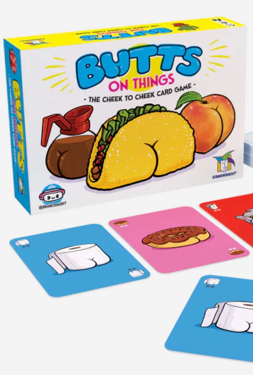 The Cheek-to-cheek card game! Get your rear in gear for this hilarious, fast-playing card game with the cheekiest art around! Play cards to a grid and capture rows or columns when both ends show matching butts! Collect the most cards and you win! No ifs, ands or…you get it.