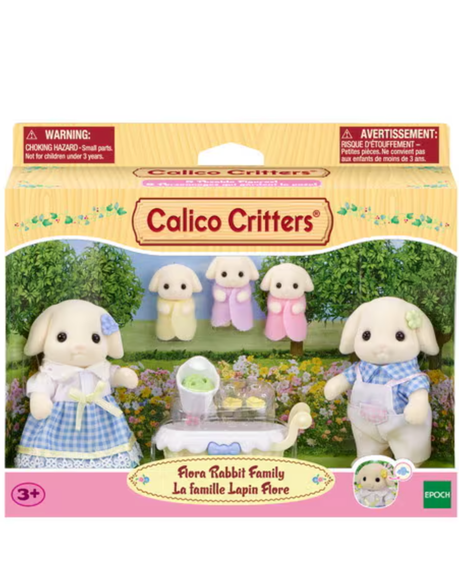 *The Flora Rabbit Family have adorable droopy ears and love flowers. This set contains the father, mother, three cradled babies and a variety of accessories.