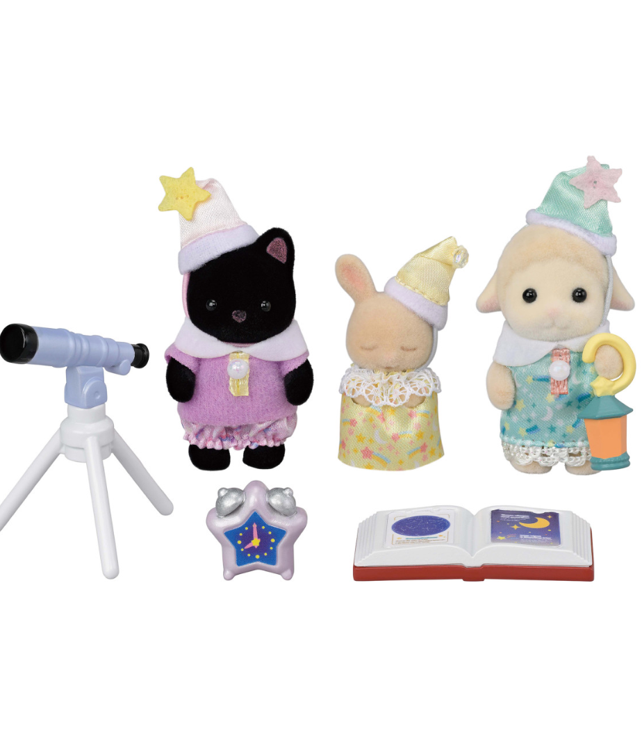 - Create fun scenes of the babies stargazing while on a sleepover party. The babies can use the telescope and constellation book for stargazing.