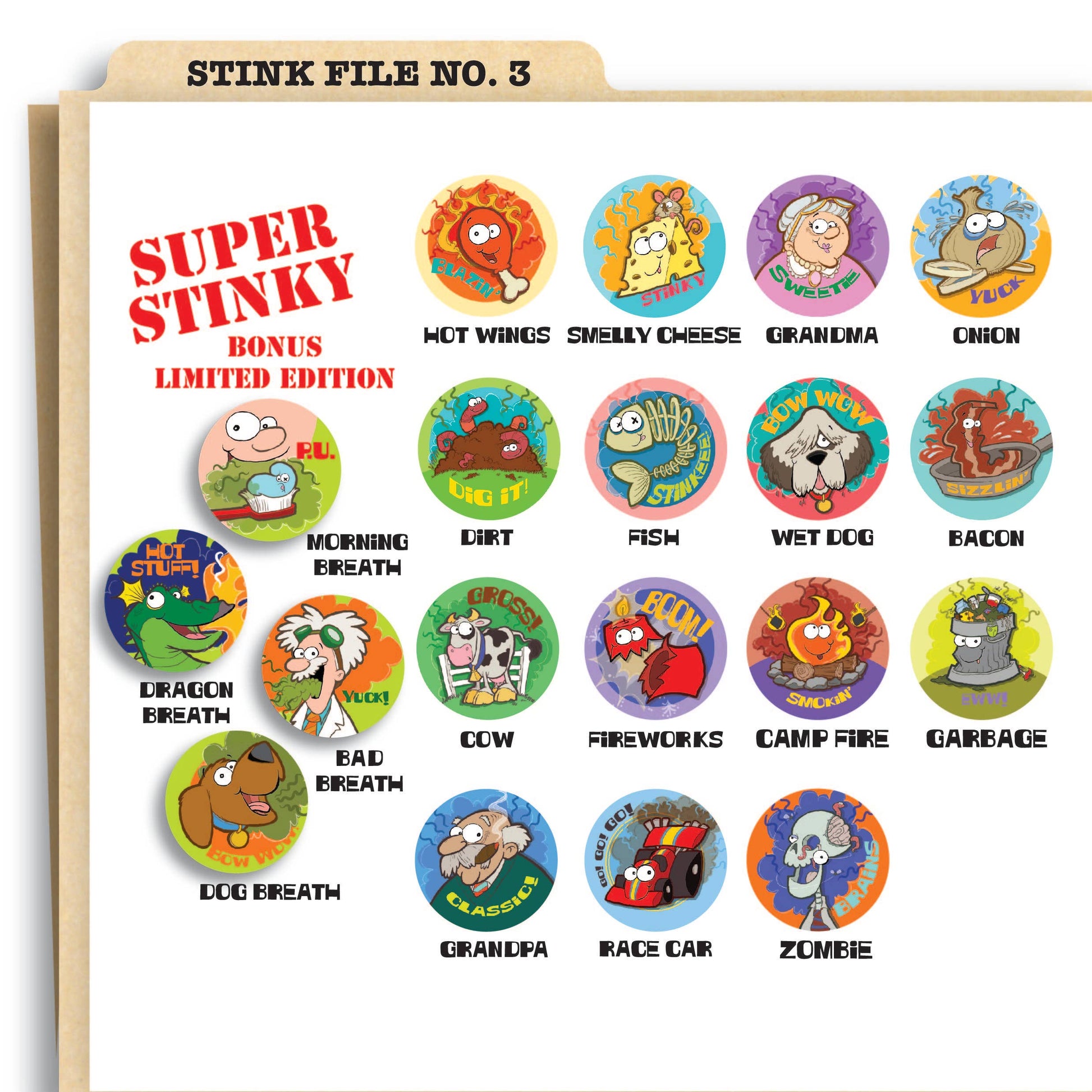 Each package contains 2 sticker sheets and 1 hidden, limited edition sticker. Super Stinky! EEWWW! Decorate notebooks, reward good grades and collect 'em all! Over 80 styles to collect, trade, and sniff!. The Stink Factory uses the highest quality inks, scented oils, and encapsulated inking processes to create its incredibly long-lasting scratch 'n Sniff stickers. Great for Teachers and back to school.