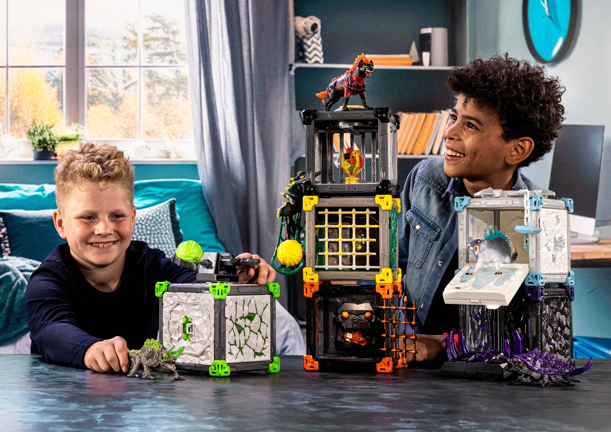 It gets scorching hot near the BattleCave of the Lava Hyena! It bares its sharp teeth and shakes its blazing mane. But if you dare to get too close to the BattleCave, you have to be careful: Arrows are fired from the eyes of the scary mask and the bars open to reveal a trap!