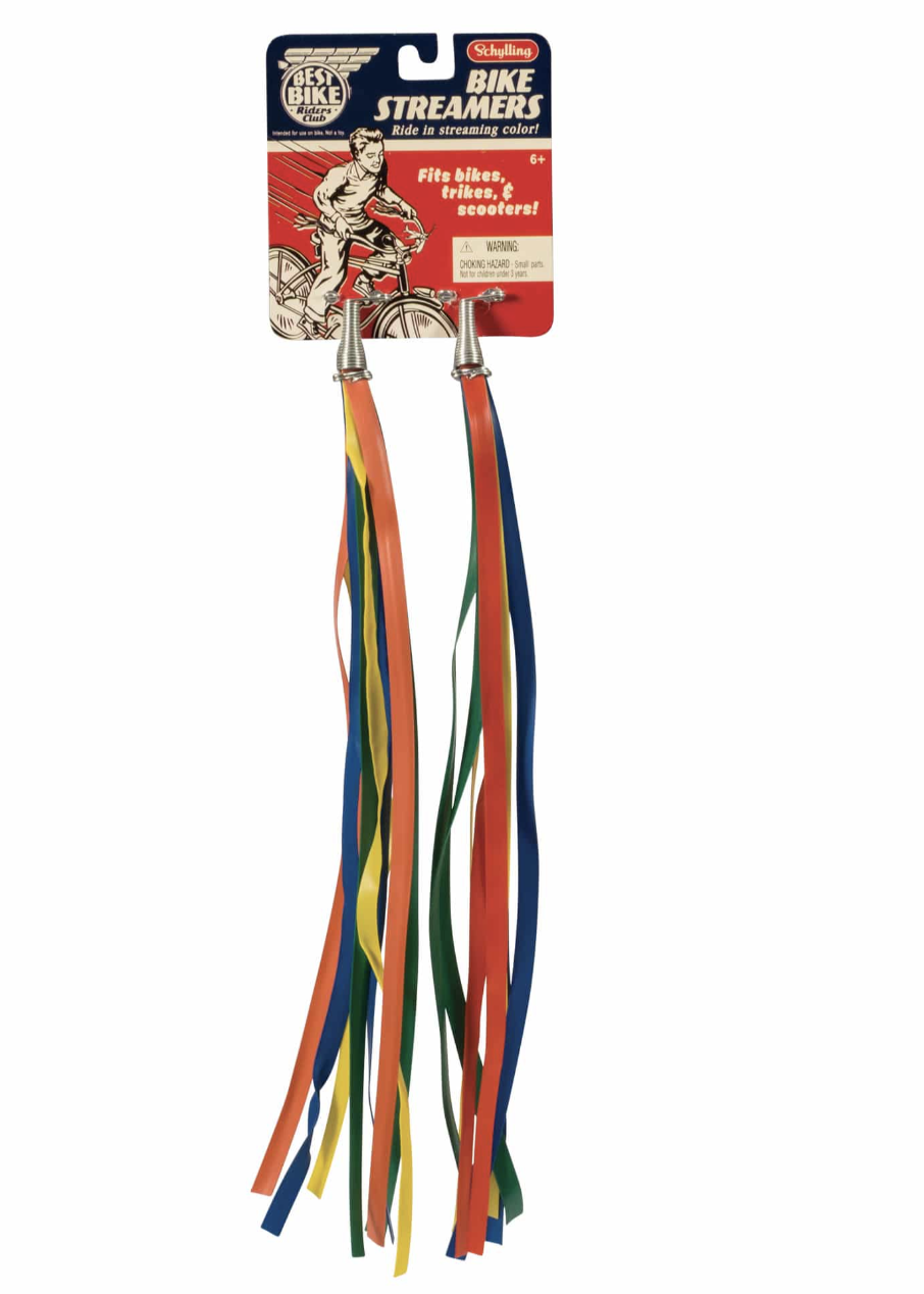 Outfit your bike or scooter in style! These festive bike streamers attach to your bike handle bars. Adds fun to any bike ride. Insert the spring clip of the streamers into the holes on the end of each handle grip. Fits bikes, tricycles, and scooters!