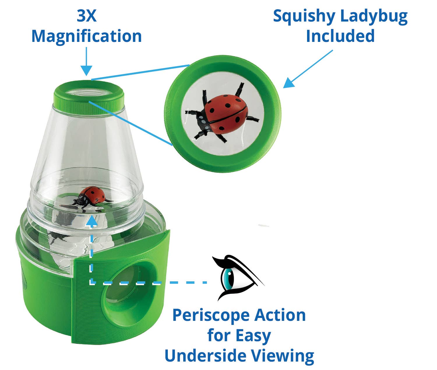 Perfect addition to any kid's science kit. It's sturdy, easy to use, and includes a beetle replica. Great for viewing ladybugs, crickets, worms, grasshoppers, and even cool pebbles.