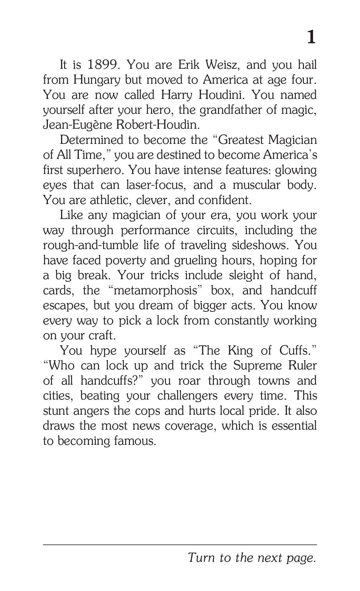 YOU are a famous magician. You are known for your death-defying stunts and extraordinary escape acts. One day you are approached by a mysterious man with a serious request: with all of your sleight of hand and intelligence, will you become a spy to learn information abroad and help the United States?