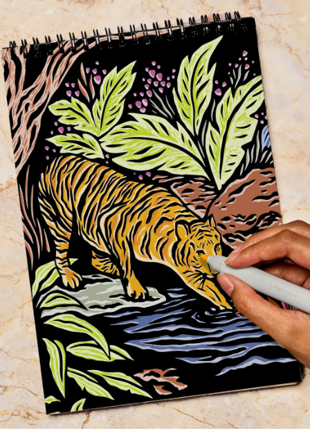 Lifelines FlowArt Pads are guided art meditations designed to help you achieve a calming flow state. Each scene is thoughtfully crafted to encourage repetitive, relaxing movements, promoting mindfulness and reducing stress. Hidden Patterns includes 20 meditative scenes and four double-sided markers in a detachable storage tray. As you color in each section, hidden nature patterns and intricate details will be revealed, adding captivating detail to the scene. Marker inks are mixable, so you can layer one color over another to create an entirely new color. Compact and portable, this pad is perfect for calming your mind on-the-go, unwinding before bed, or taking a work or study break to de-stress.