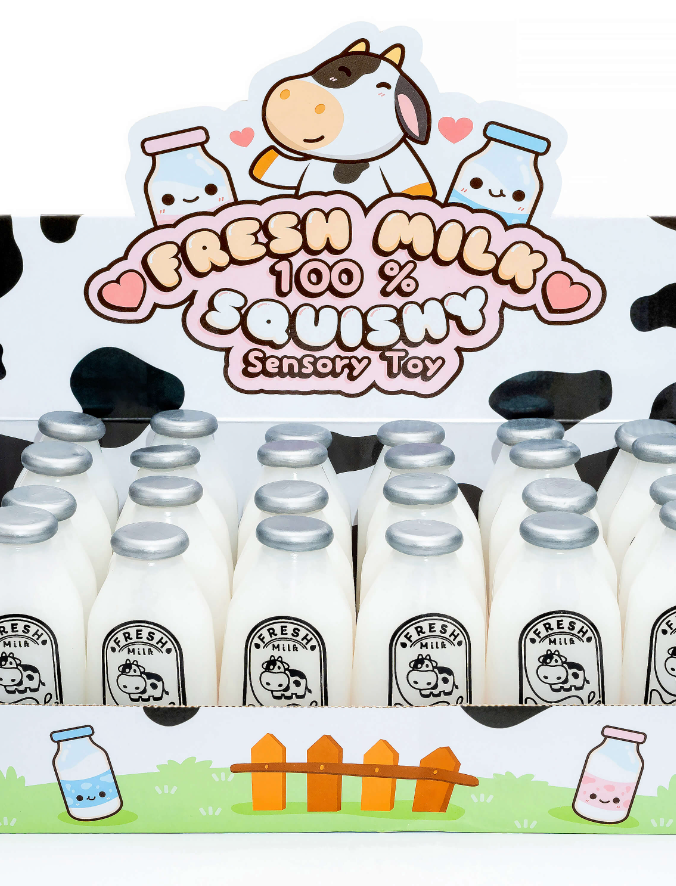 Satisfy your senses with our Fresh Milk Squishy Sensory Toy! This quirky and playful toy comes in a case of 24, featuring a squishy milk bottle design that's sure to bring joy and relaxation to anyone who squeezes it. Get your hands on this satisfying toy today!