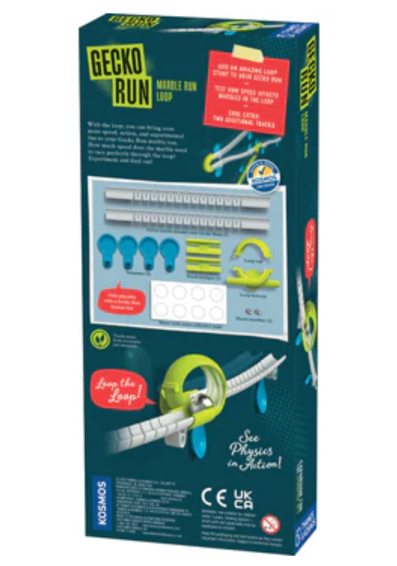 With the Gecko Run: Loop Expansion Pack, you can bring even more speed, action, and experimental fun to your Gecko Run marble run. How much speed does the marble need to race perfectly through the loop? Experiment and find out!
