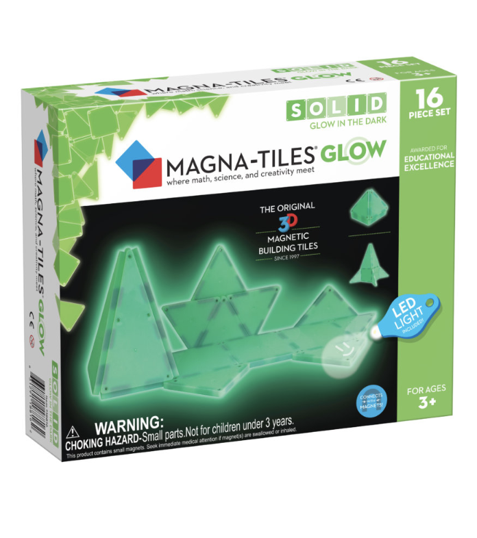 Creativity sparks in the dark. Grab these unique glow tiles for your favorite little builder to create towering castles and roaring rockets that light up their playtime. With the included LED keychain light, the Glow 16-Piece Sets gives kids the option to supercharge these pieces or leave them in direct sunlight to activate the glow-in-the-dark features.