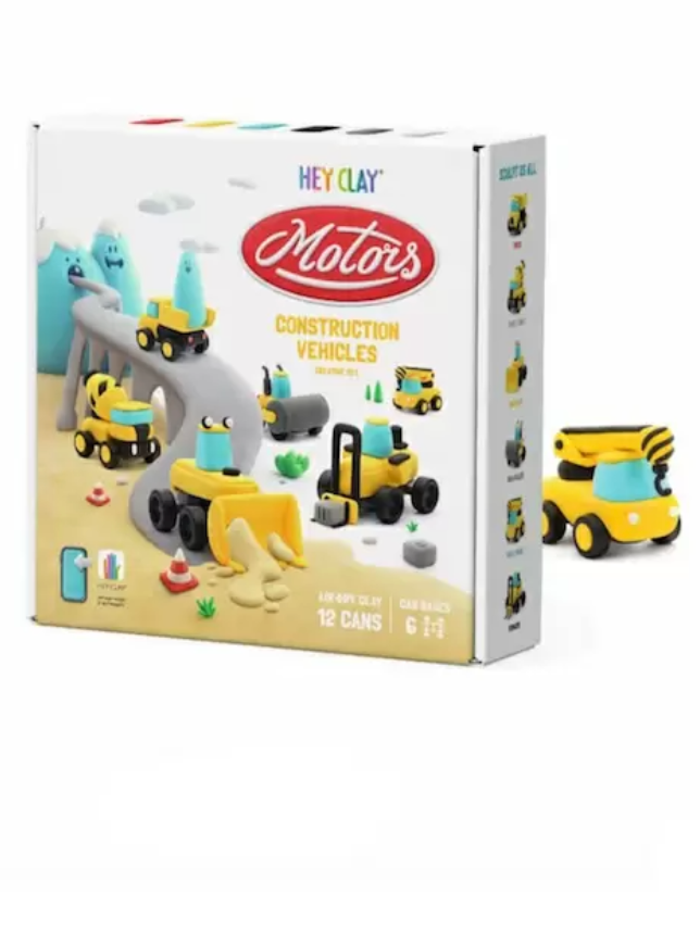 This vibrant clay is soft, lightweight, non-sticky, nontoxic, and stain-free - perfect for young artists taking their first step into the magical world of clay creativity. The fun starts once you download the free app and gain full access using the code included in the box. Pick one of the six construction vehicles. Then, follow along with the interactive 3D step-by-step instructions to masterfully mold it onto one of the six free-rolling chassis. As kids build, they're learning real-life sculpting techniques. Plus, once it's finished, it's not just a model, it's a real toy construction vehicle they can play with! Dig into the thrill of clay creativity with the Hey Clay Construction Vehicles set.