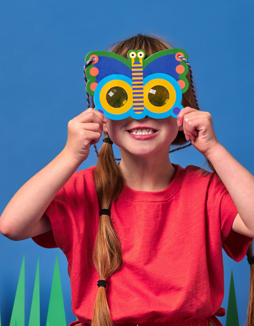 See the world in color! Wearable butterfly prism lens adds kaleidoscope views and vibrant fun to any adventure.