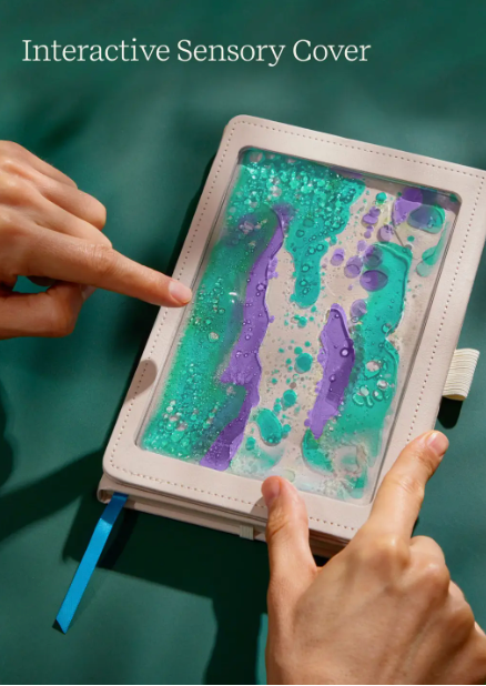 Spark your creativity with our “Shake It Up: Meadow” Sensory Journal, thoughtfully designed inside and out with an interactive color-fusing cover and embossed paper. Delight as you push the colorful liquid or follow the soothing nature-inspired patterns to keep your ideas flowing.
