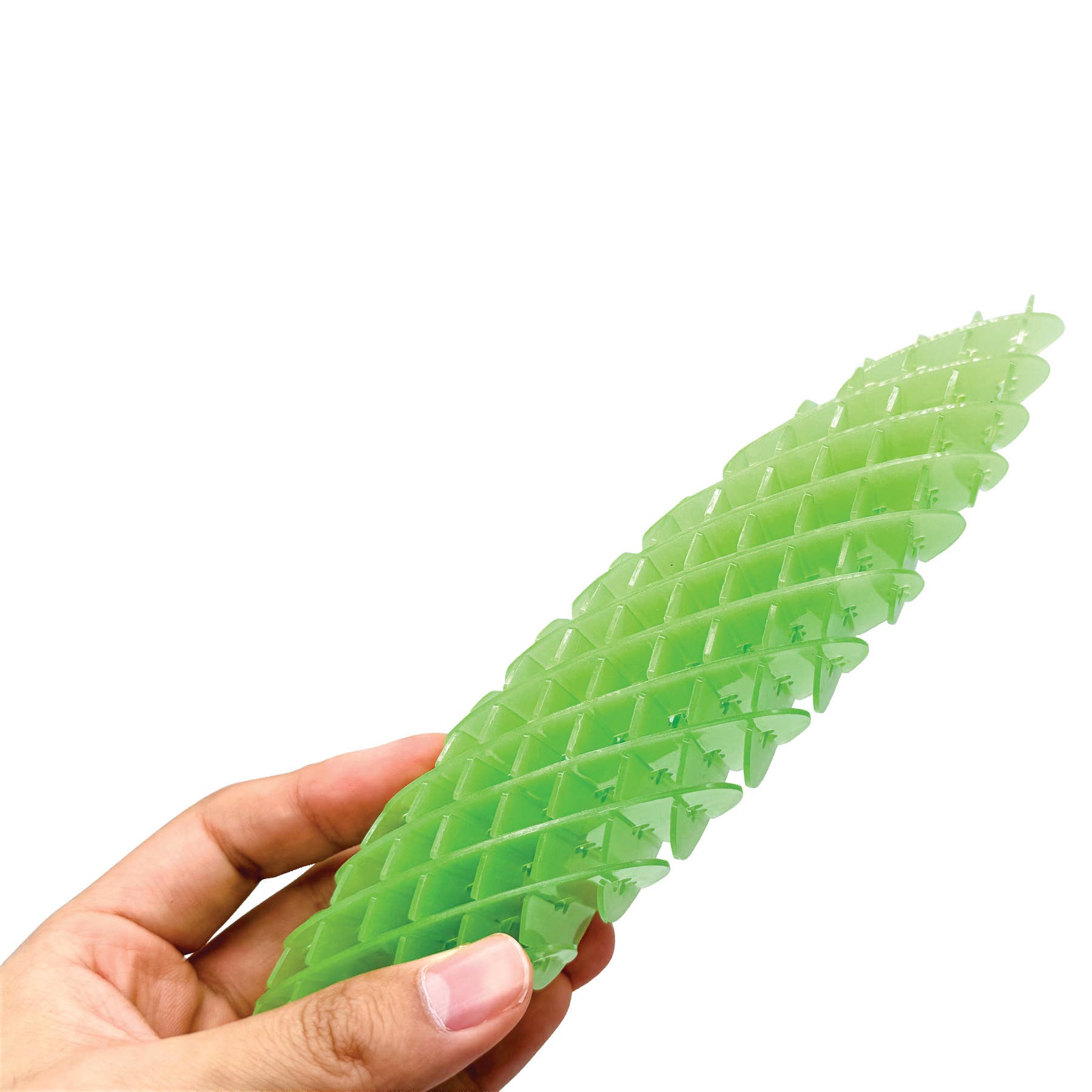 Toss it, squeeze it, morph it, bounce it, watch it glow! These shape shifting toys are perfect for relieving stress in children and adults. Also works great as a hand strengthening toy when squeezed. Compact and easy to carry with you on the go. Lime-green color glows in the dark. Recharge glow with a bright light source.
