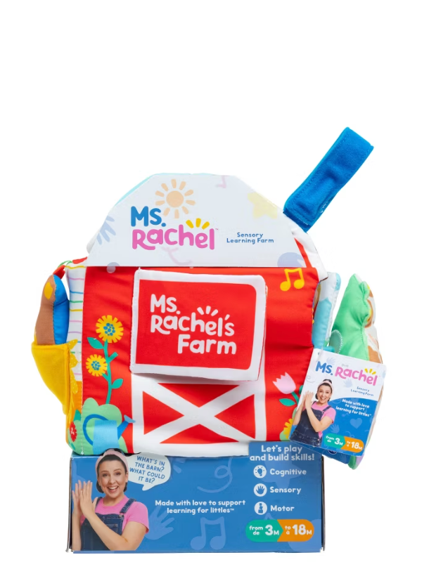 Introduce baby to barnyard fun with Ms. Rachel’s Sensory Learning Farm! Inspired by Ms. Rachel’s videos, this learning toy is made with love and features eight unique animal environments for sensory play, ribbons, and peek-a-boo crinkle flaps. Babies can use their senses to explore textures, sights, sounds, and develop fine motor skills by lifting flaps and grasping objects. Tummy time on the Sensory Learning Farm promotes developmental activity from gestures and building dexterity, to first words, numbers, and language development. From the makers of GUND Baby, the baby-safe Sensory Learning Farm is made with the highest safety standards. Ideal for use at home, as part of your infant travel toys, as newborn gifts, an accent to your baby nursery, or to top off a birthday baby gift!