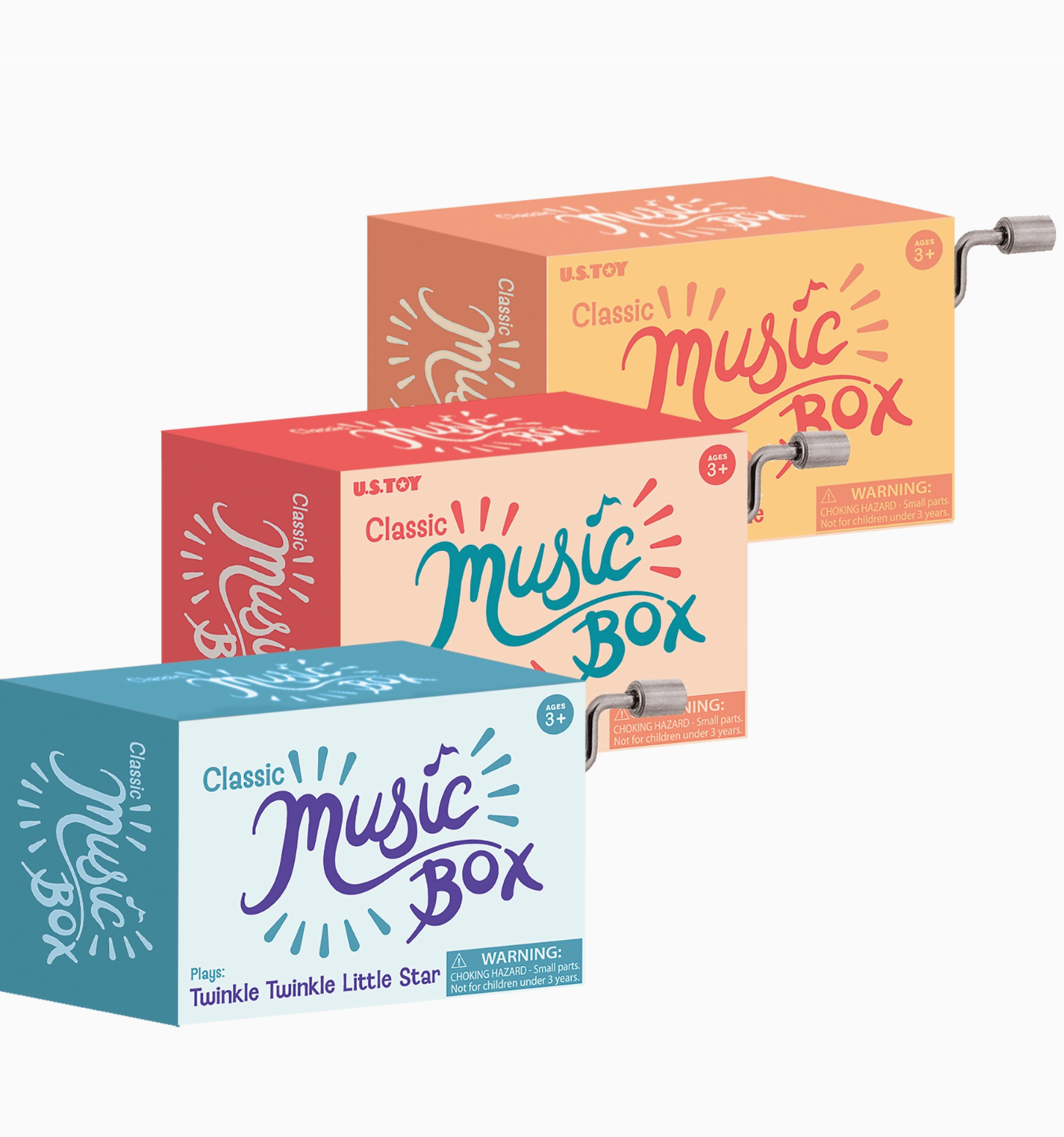 Classic hand crank music box. Available in three