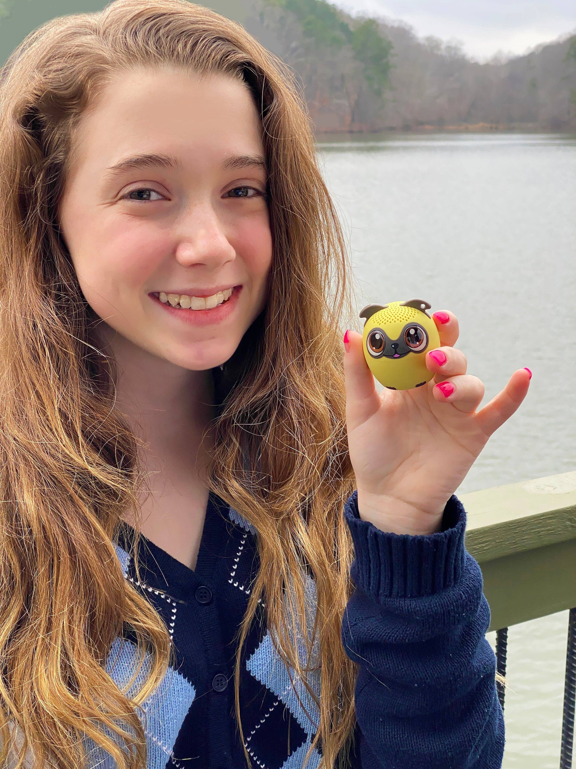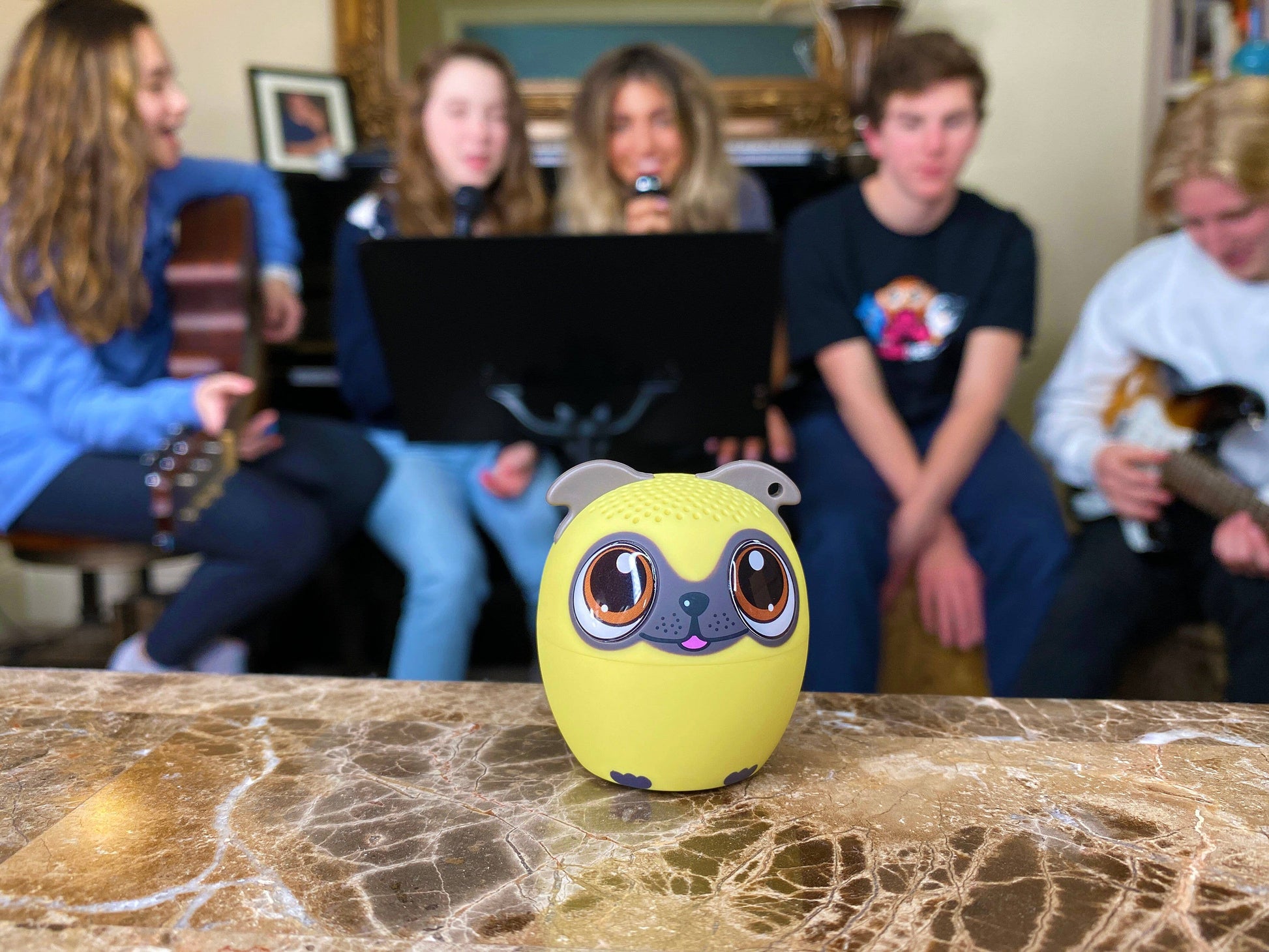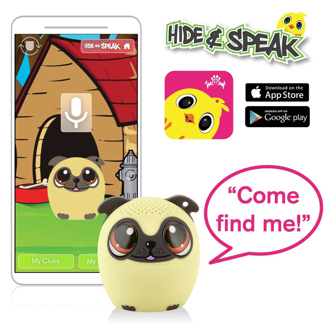 Pup (power pup) - Mini Bluetooth Speaker. You'll be surprised by the mind-blowing sound and rich, clear quality. Bluetooth 5.0 provides clear and crisp sound. Easy connection to phone, tablets, laptops and computers. You can pair two and have True Wireless left/right channel stereo. The rechargeable battery will provide over 4 hours of playback. Talk hands-free - yep, it has a microphone. Woah... right?! Also includes a selfie remote. Take pics with one click so you don’t have to ask strangers. Use the speakers to play the free Hide & Speak app with your My Audio Pet . Download from Apple or Google and have some ridiculous fun when not listening to music.