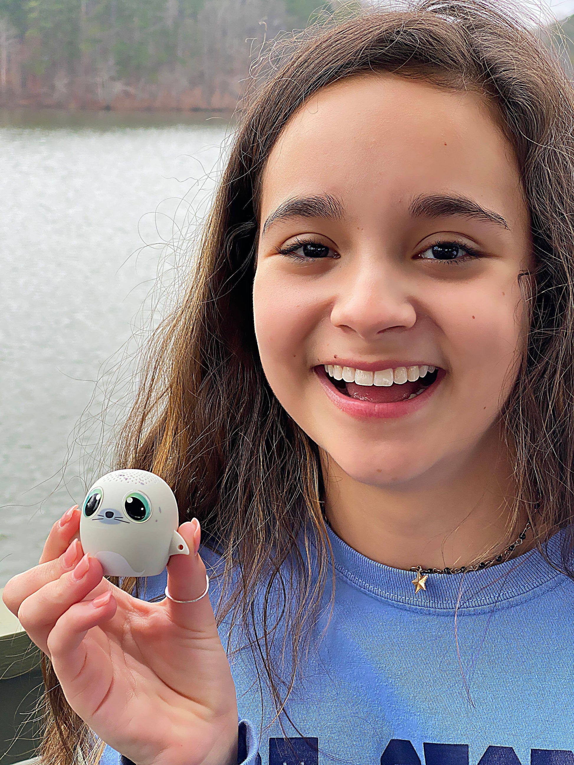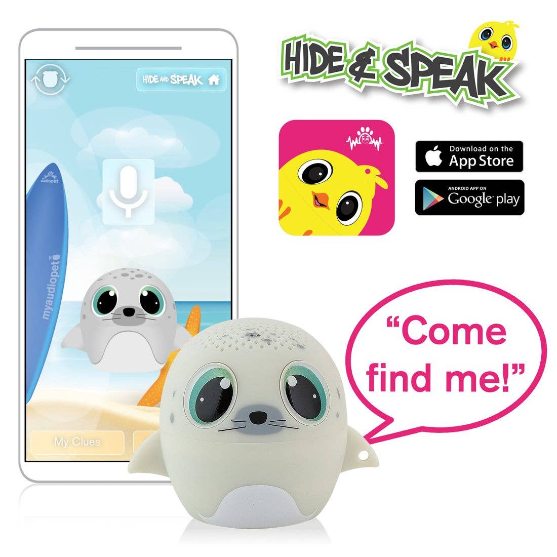 Seal (SEALebration) - Mini Bluetooth Speaker. You'll be surprised by the mind-blowing sound and rich, clear quality. Bluetooth 5.0 provides clear and crisp sound. Easy connection to phone, tablets, laptops and computers. You can pair two and have True Wireless left/right channel stereo. The rechargeable battery will provide over 4 hours of playback. Talk hands-free - yep, it has a microphone. Woah... right?! Also includes a selfie remote. Take pics with one click so you don’t have to ask strangers. Use the speakers to play the free Hide & Speak app with your My Audio Pet . Download from Apple or Google and have some ridiculous fun when not listening to music.