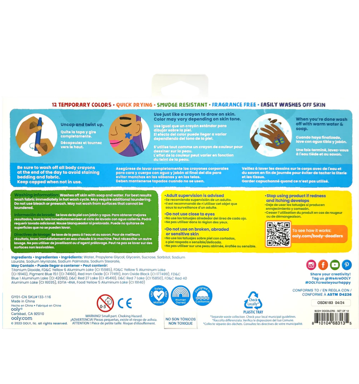 Are you feeling like a clown? A punk rocker? A human flower? Express those whims with this set of face and body crayons! It includes 12 temporary colors so you can transform yourself into whatever you dream up, and then easily wash it off whenever you want. Each non-toxic body crayon twists up so you can add more color whenever you need. Body art crayons are great for adding activities like face painting to a birthday party, or for turning a humdrum afternoon into a creative adventure!