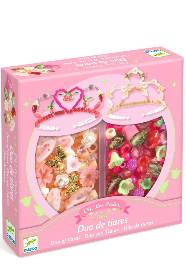 Create two magnificent tiaras worthy of a princess with this comprehensive and easy-to-make beading kit! With 240 different acrylic beads, gold headbands and flexible metallic thread, children have all the materials they need to make elegant, sparkling accessories.