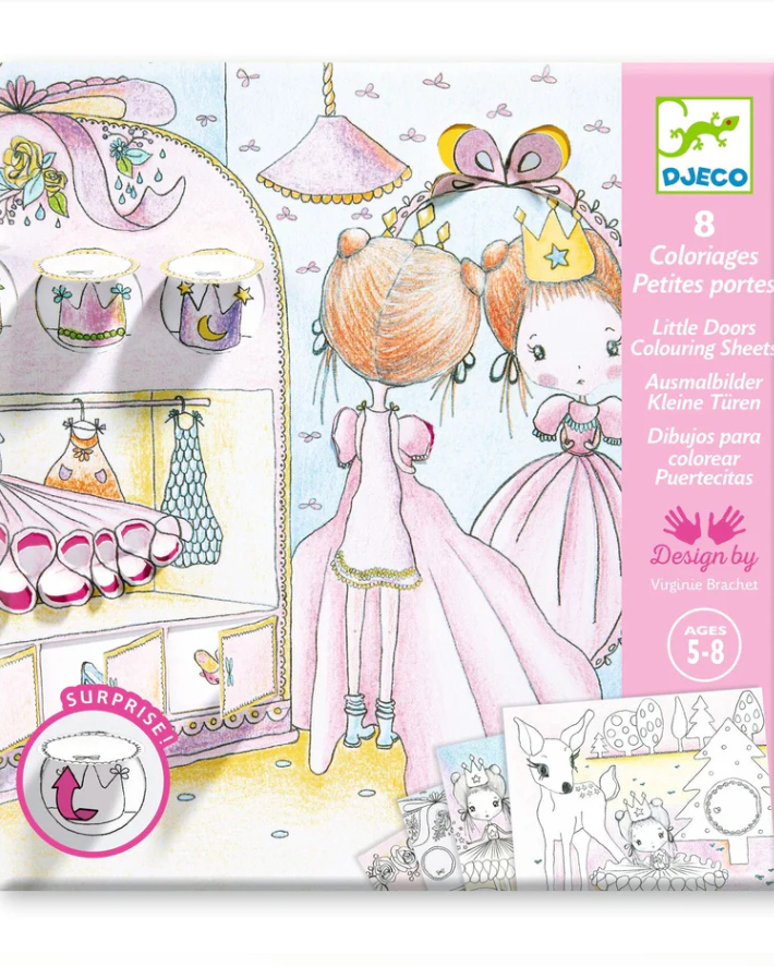 As you’re coloring, lift the windows to discover little details for you to color in. Little doors full of surprises!