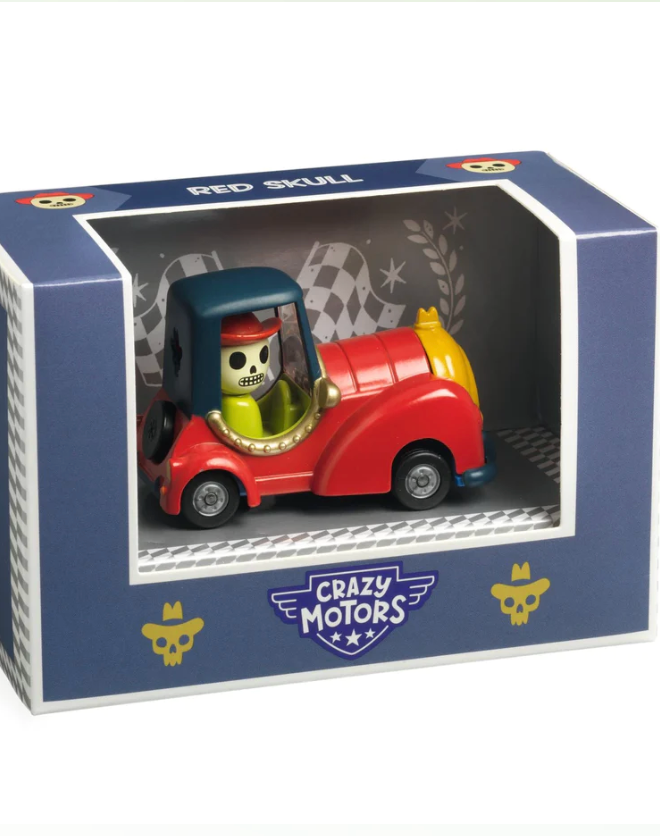 The mighty Red Skull has come to town! With his stylish car with metallic details, Red Skull (half skeleton, half human) has the locals shaking in their boots whenever he drives past! Crazy Motors...