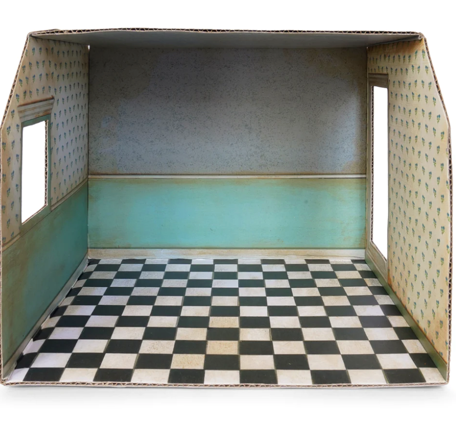 This lovely miniature room is made of cardboard and printed on all sides with the characteristic wallpapers and floors of The Mouse Mansion. The box is easy to assemble thanks to the handy flaps with double-sided tape.