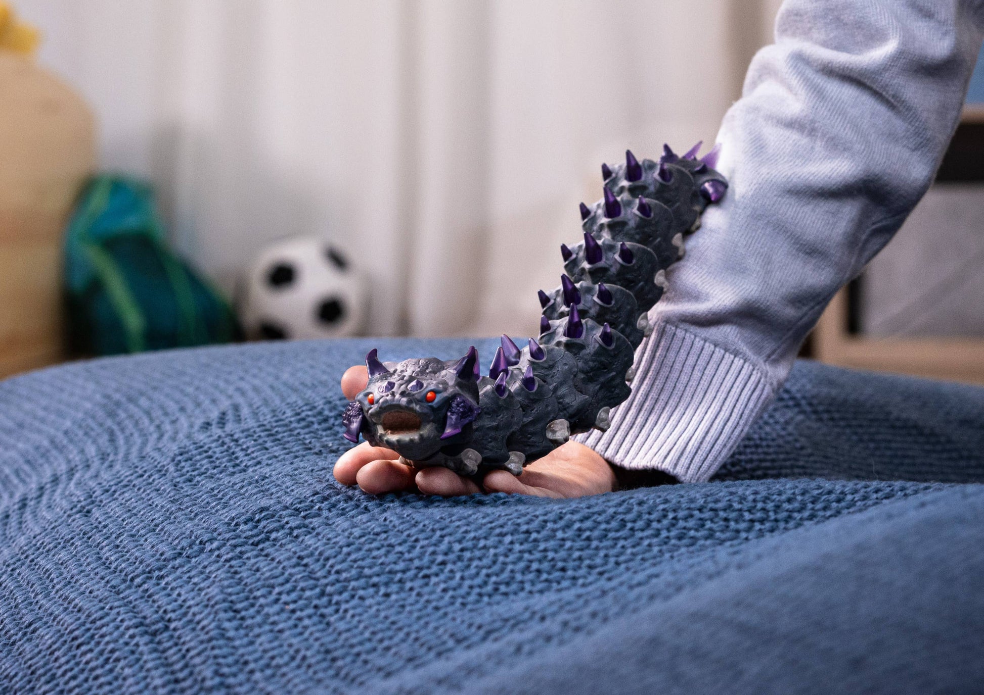 Anyone venturing into the shadow world should take good care. The nasty shadow worm is aways lurking around here. With its agile, fully mobile joints, it slithers through the shadow world at lightning speed. It can even dig through the earth in no time at all. So you don’t notice anything until it suddenly shoots out of the ground in front of you. That can be scary! Hissing, it opens its mouth, filled with pointed teeth, with red eyes glowering. Let’s get out of here!