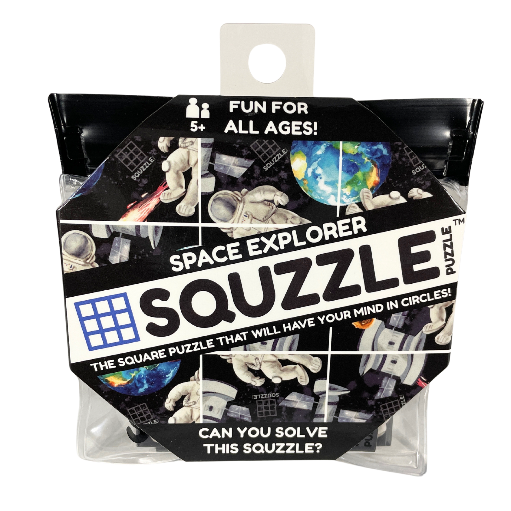 Designed for convenience, Squzzles come packaged in a compact 4.5"x 4.5" x 0.5" bag. Each Squzzle piece measures 3in x 3in with the entire puzzle measuring 9in x 9in when arranged in a 3x3 playing grid to solve. Play at a restaurant, on an airplane or at home- Squzzles are the perfect brain game.