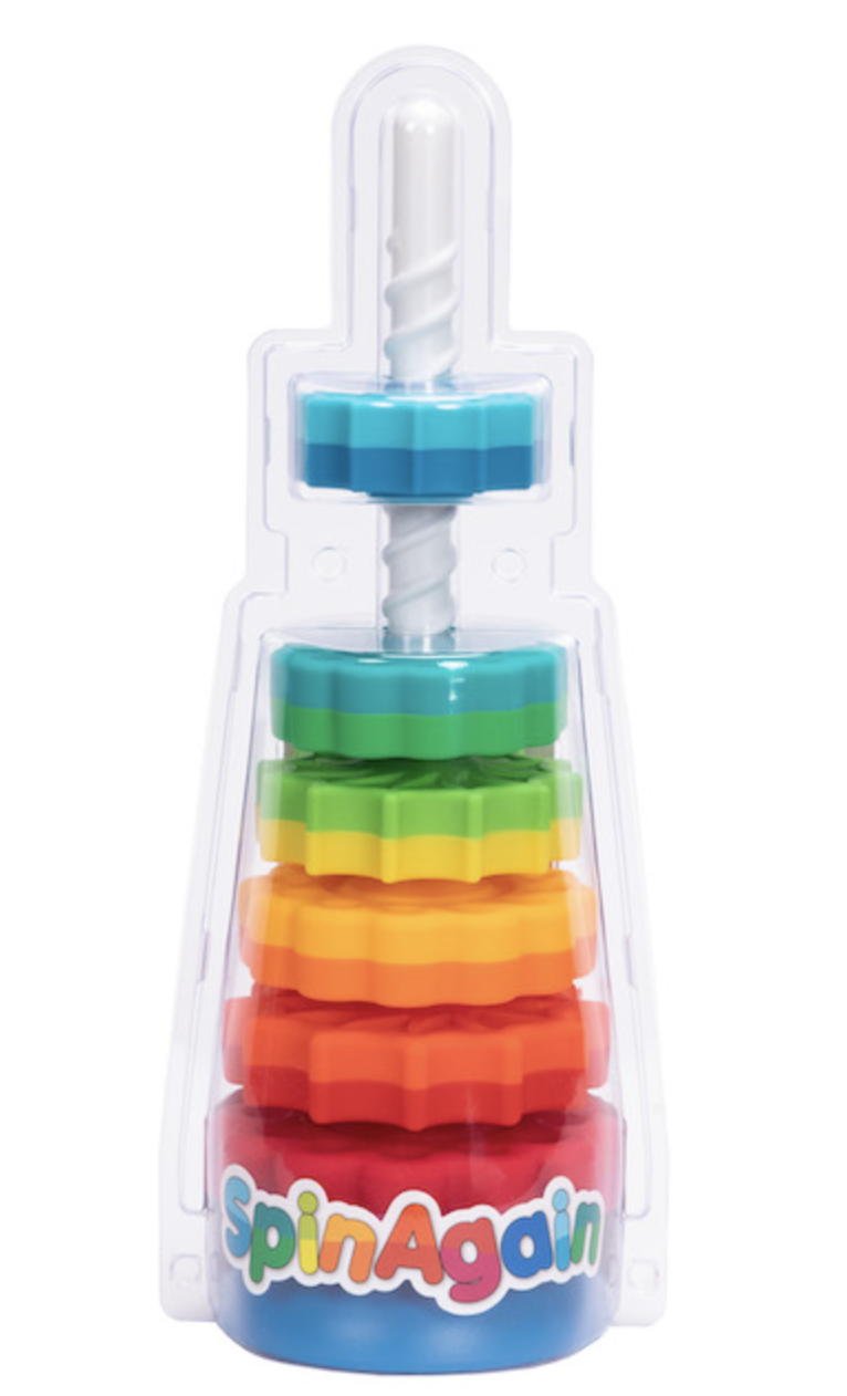 It's a stacking toy with a spin—literally!