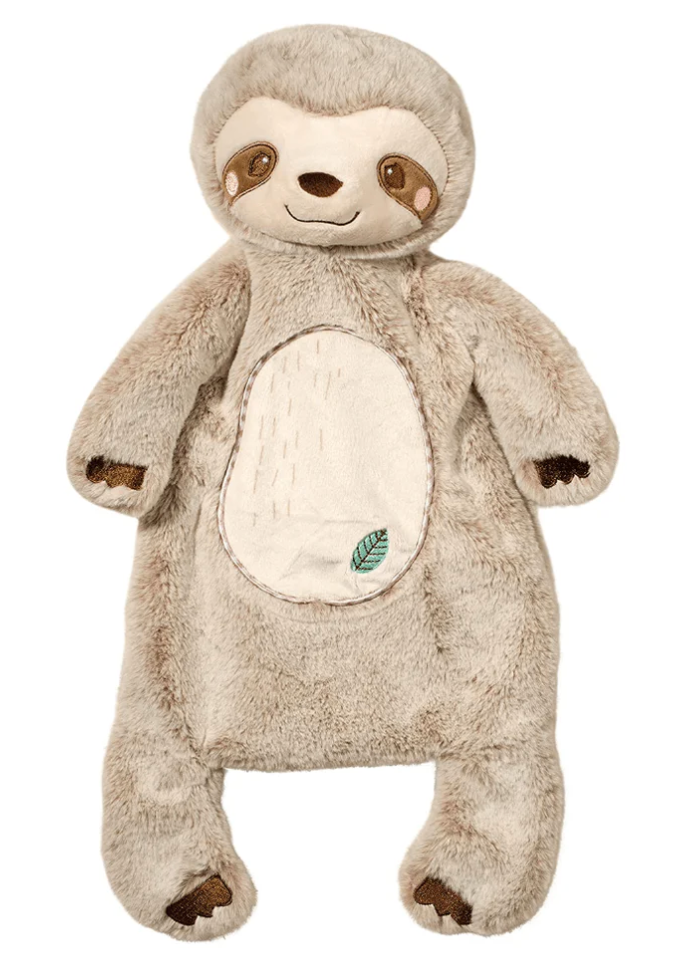 Stanley the plush Sloth Sshlumpie is the ideal companion for Baby. Measuring 19” long, this machine washable soft toy’s unique design allows it to double as a blanket and a stuffed animal! Whether they’re placed out flat for Baby to lie on, or squished up to be snuggled, our plush Sshlumpie characters set a new standard for creativity in infant toys. Stanley the Sloth is made with only the softest materials available. He features charming embroidered facial details and a little leaf on his belly.