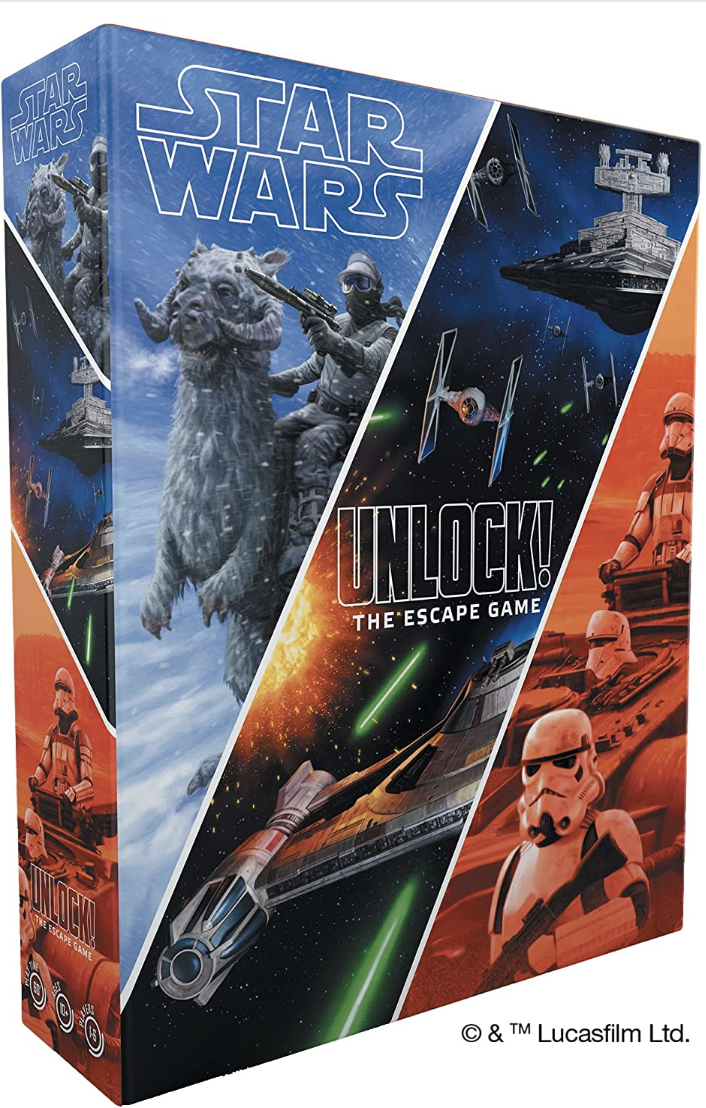 As rebels, smugglers, or imperial agents, search locations, combine items, use ships, weapons, interact with droids and machines in these three 60-minute adventures. Real-life escape rooms challenge you to literally escape a room within 60 minutes. With UNLOCK! experience the same thrills without setting a foot outside. Powered by the multi-awarded Unlock! game system (over1 million copies sold).