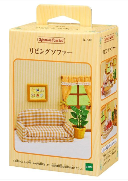 Cute little accessory set for Sylvanian Families (Calico Critters)! It includes one checkered couch, one floral piece of wall art, and one houseplant. A perfect addition to your Calico Critters collection!